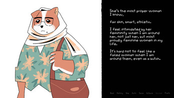 Super lovely game, got me to make an account to comment on it X] Very expressive artwork and the writing really helped me to expand upon how I'd thought about physical contact and the anxiety that comes with such; overall quite inspiring!!
