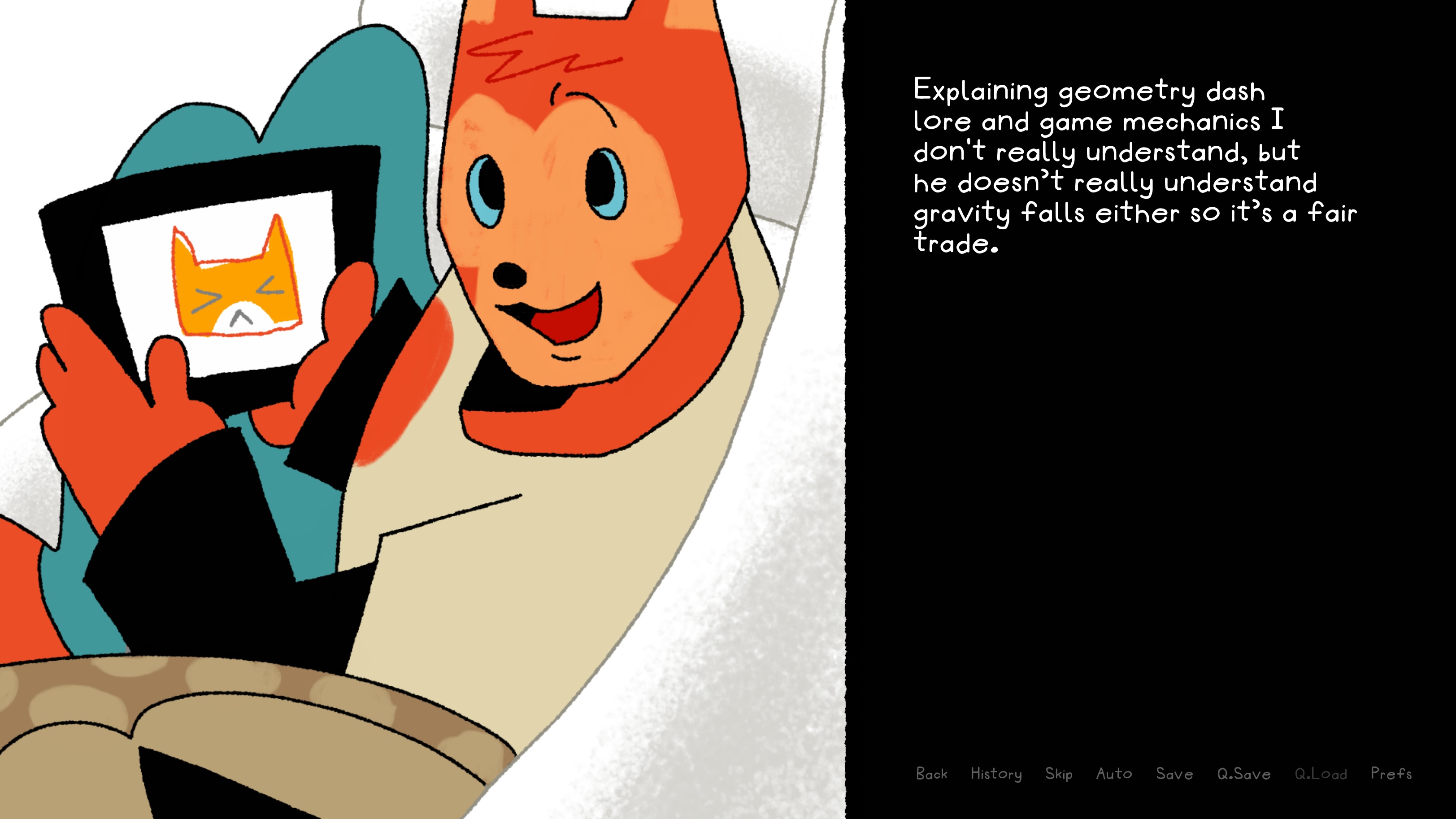 This might be something happening with my machine or one of Ren'py's silly little oopsies, but I suggest you check out how it looks on your end.